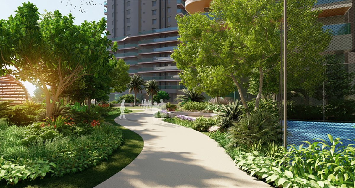 The Fortune Grande project is a high-density development featuring very tall towers. The open spaces have been thoughtfully designed across different tiers and levels.