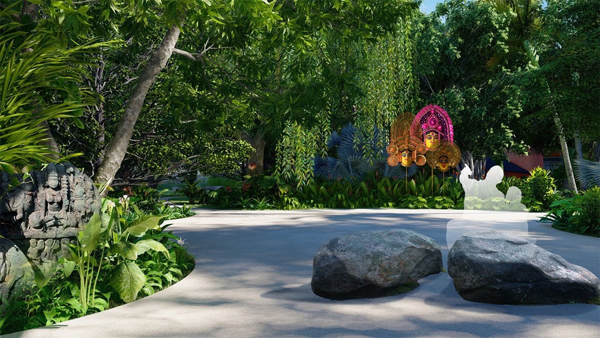 This unique settlement echoes the vernacular character of traditional Bengal through bespoke art forms, authentic materiality, and the immersive experience of a Bengal village -complete with large tracts of crop fields and carefree, meandering pathways.