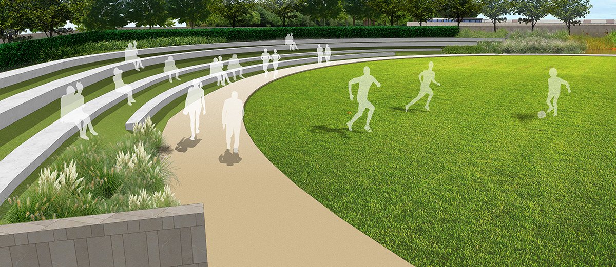 The arrival takes one to a large open ground wrapped diagonally opposite with layered terraces acting as a large amphitheater thus making this as an event bowl. Then the rest are series of linear parks and waterfront promenade with water edge restaurants and alfresco sit out decks.