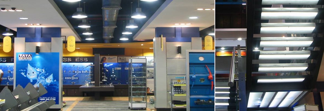 A retail space of 36000sqft to be a showcase of mild steel and stainless steel products for TATA STEEL, the project was a challenge to exhibit metal in raw as well as finished form. The entire store was build primarily in combination of mild steel and stainless steel including displays, staircases, furniture and lighting. The project exhibited metal in raw form and in hardware form on ground floor whereas the first floor exhibited finished goods like furniture, accessories and a cafe.