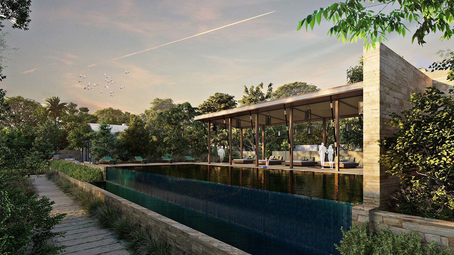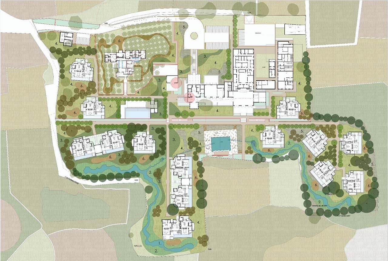 Drawing inspiration from the dry deciduos forest, open grassy meadows and rocky terrain of Ranthambore National Park, the project’s conceptual theme focuses on seamlessly integrating the resort buildings within the grasslands. This design approach is complemented by a meticulously curated thematic planting palette.