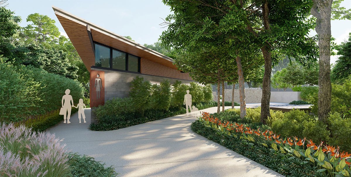 A clear jogging loop encircles the central open ground, weaving through multiple pause points and amenities. The vista opens up with engaging landscape features: art walls, circular huddle zones, a ring pavilion, sports corners, fitness corners, and interactive pockets. A series of floral sweeps enhances the experience, with species that bloom across the year. Bespoke elements and intricate attention to detail make the park unique and experiential.