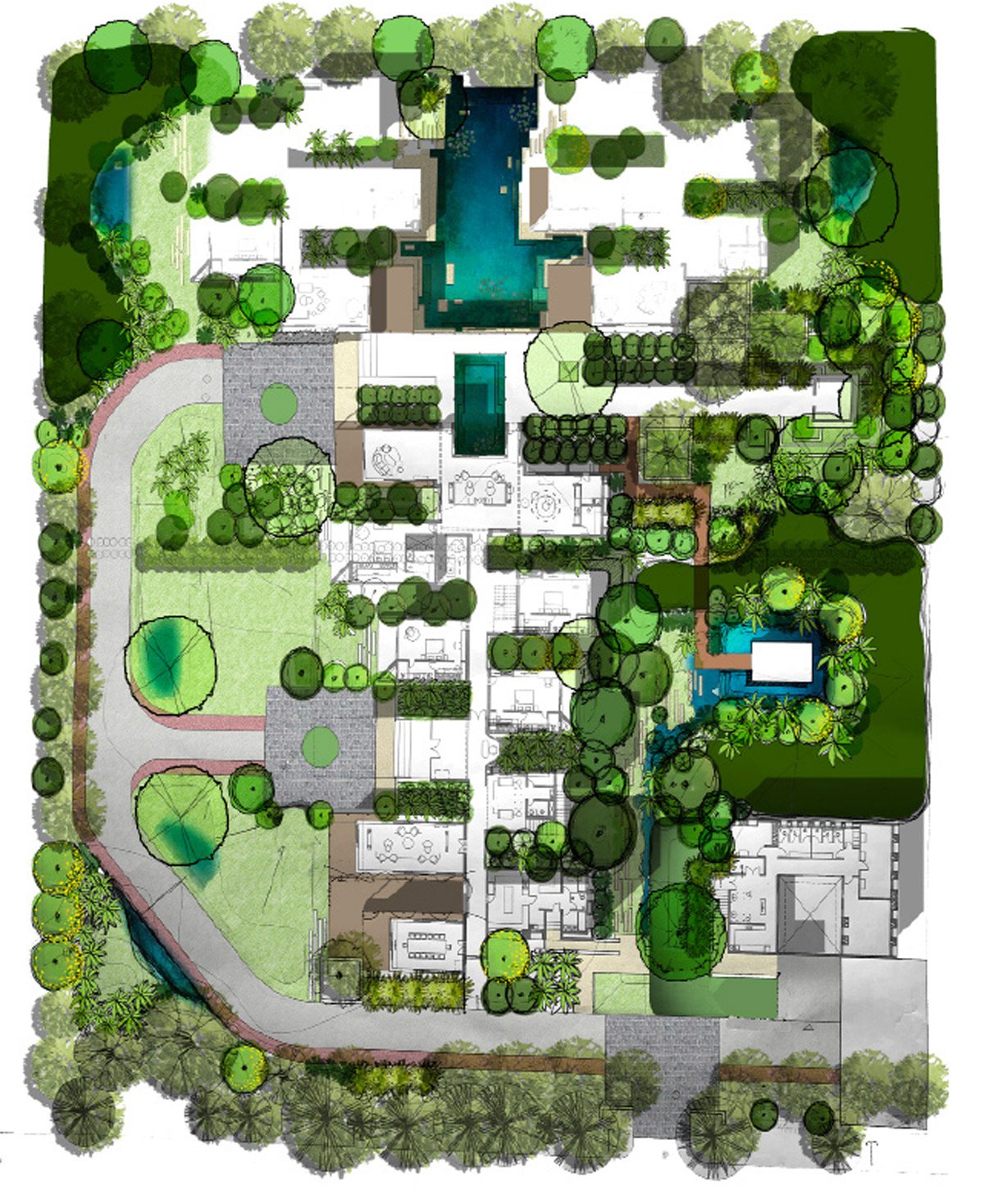 The design program is focused on non-fancy, non-recreational spaces, with an emphasis on greenery as the sole experience. A biopond and minimal walk-out areas will provide a distinctive experience for this farmhouse, which is being designed to achieve a Net Zero Energy model. To enhance the landscape design, a microforest, based on the Miyawaki principle, will surround the farmhouse, providing protection from all sides.