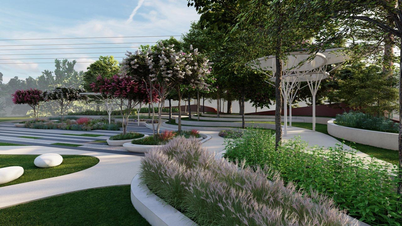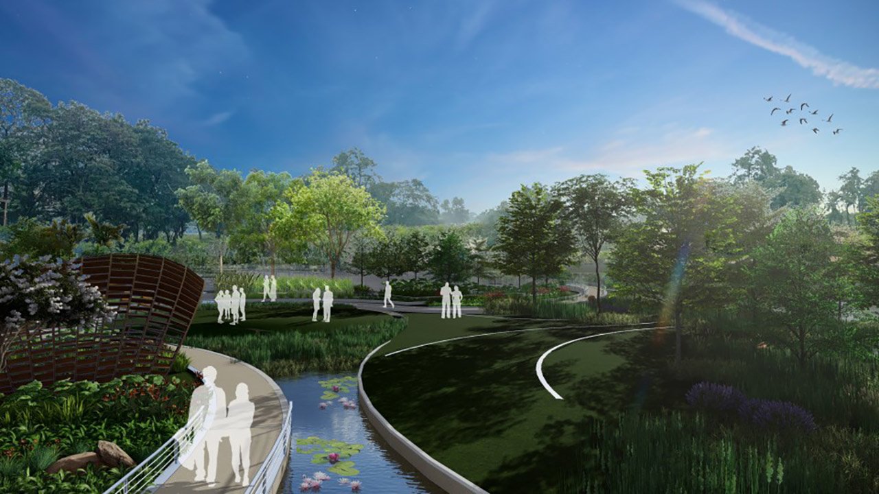 The site runs parallel to an active seasonal stream, providing riverine edge treatments and sponge landscapes along its banks, best experienced through a non- intrusive boardwalk. This approach aims to invigorate the mind, body, and spirit while promoting harmony with nature and enriching the overall environment.