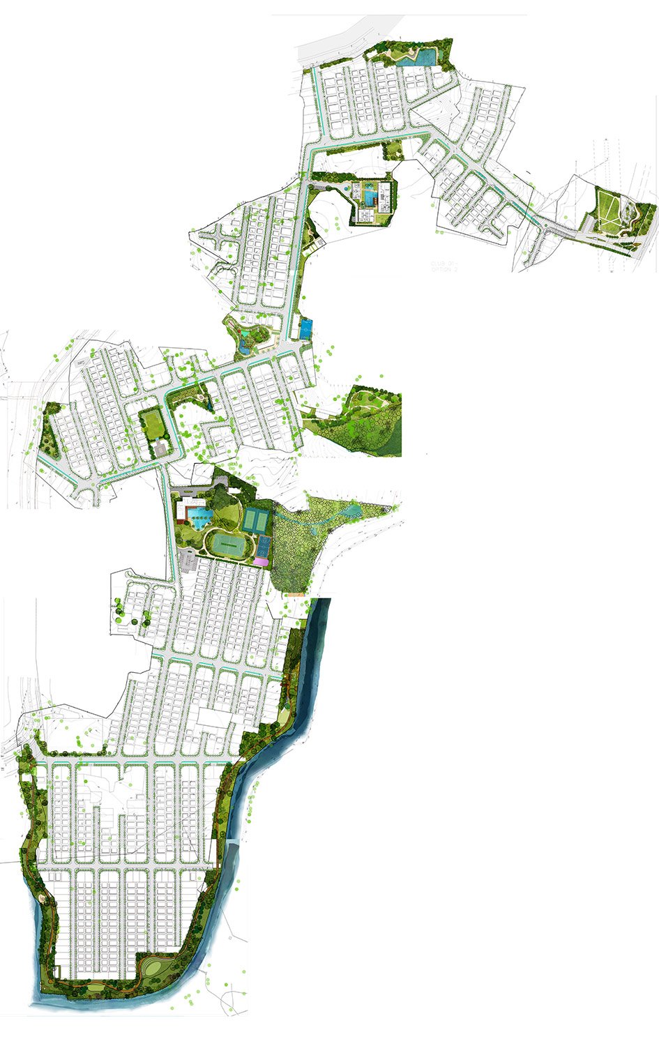 The project's primary objective is to incorporate Blue-Green Living principles into the public spaces of the plotted villa township, fostering holistic well-being by nurturing the symbiotic connection between oxygen, plants, and a healthy lifestyle. It follows a Biophilic Landscape Strategy, seamlessly blending various forest types and green areas, such as rain tree canopies, orchard roads, tropical forests, riverine forests, ceremonial forests, and more throughout the township.