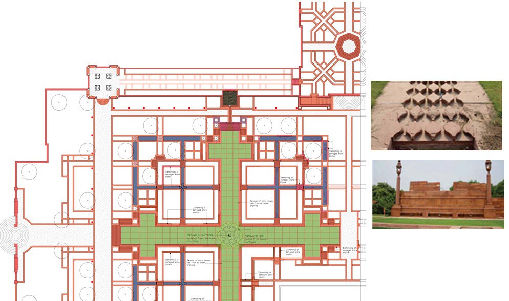 Recommendations include appropriate conservation strategies for the weathered hardscape and stonework to restore the imperial garden's former glory. Suggestions were also made to address missing elements and align the garden with its original design, based on extensive research, documentation, and analysis