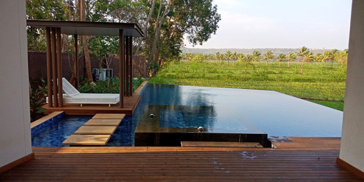 Nestled amidst the lush greenery of the Konkan region, Villa Encanterra embodies a minimalist design approach, aiming to create an abode in the ‘Rome of the East.’ Tranquility and harmony are key considerations in a site surrounded by a breathtaking landscape, enhancing its appeal and charm. With a simple yet refined design, the spaces have been thoughtfully developed as an ideal retreat for relaxation.